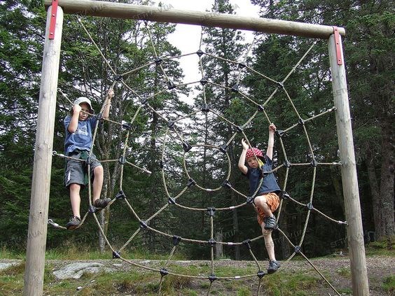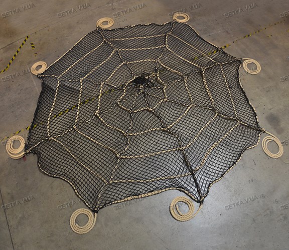Сетка для лазания в форме паутины паука. Можно делать разной формы, размеров, цветов..